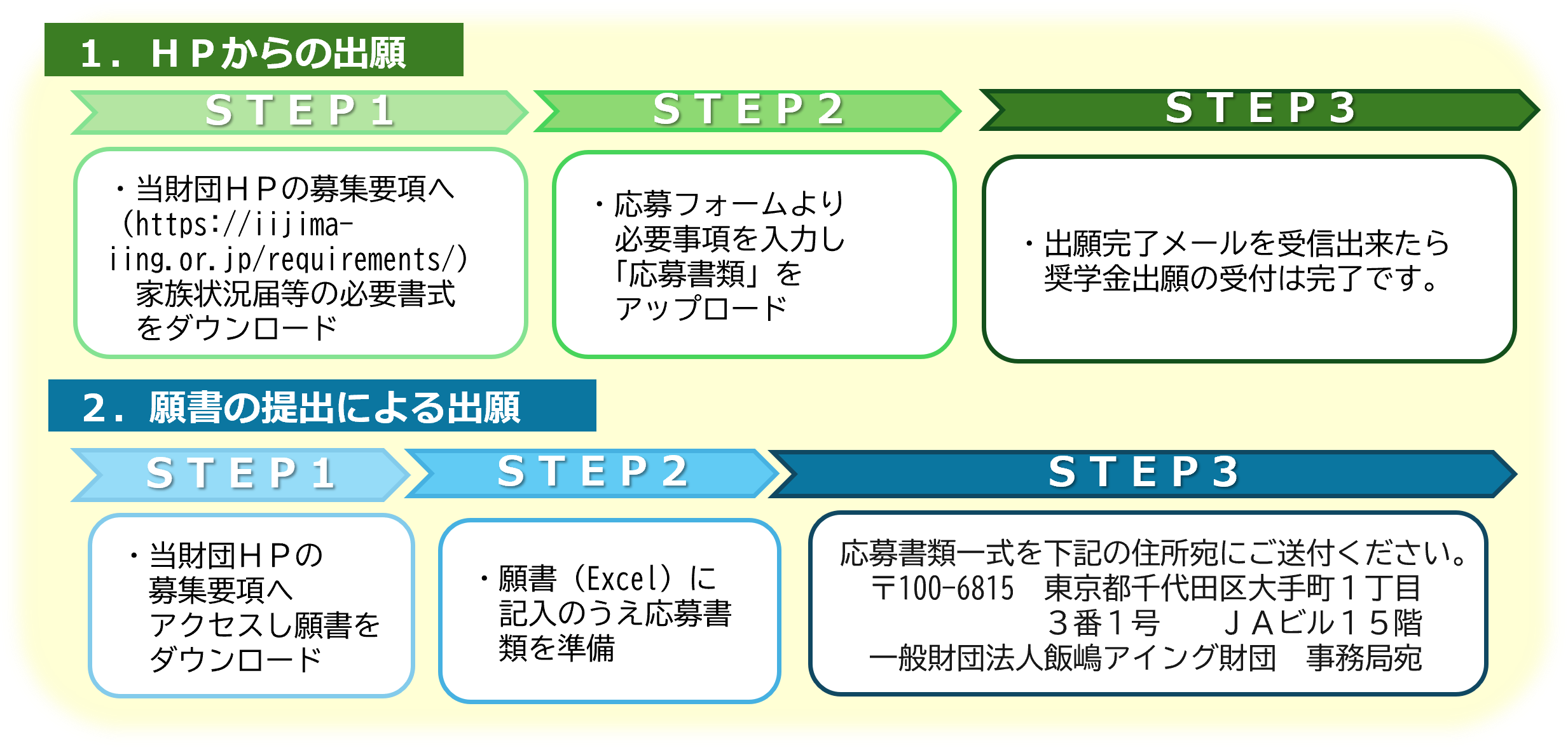 ※学校で取りまとめて出願される場合、出願方法は当財団HPの募集要項をご参照ください。